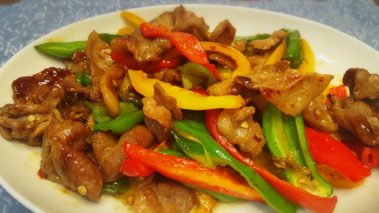 こんばんは☆ お友達から自家栽培のパプリカをたくさんいただいたので(^^)/ お鍋をした時の豚肉が残っていたので 青椒肉絲風に作ってみました。 1人暮らしなので、色とりどりのパプリカを購入するのは 難しので嬉しいなぁ(*^^)v
