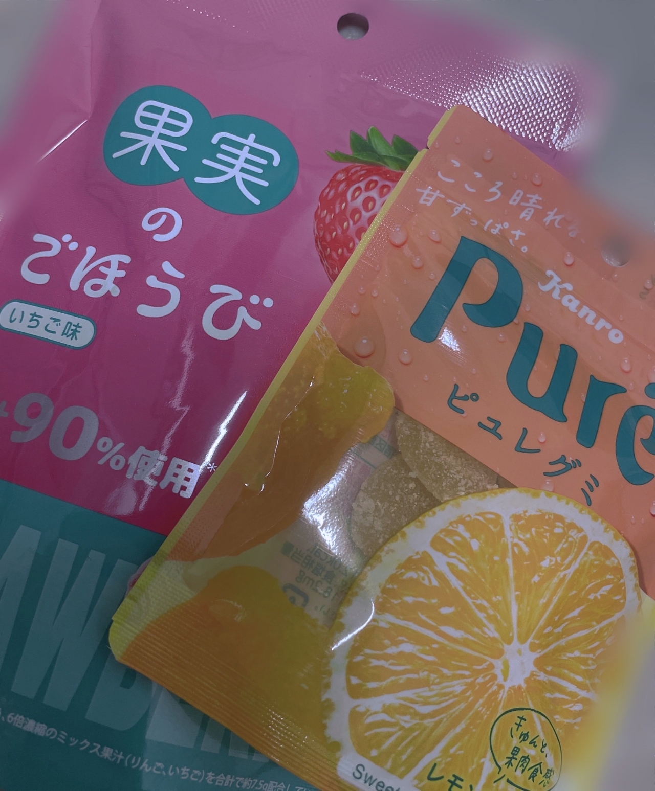 日中は まだまだ暑いけど 夜は過ごしやすくなりましたね(*´꒳`*)🩵 おでかけした時に買ったグミ🍓🍋