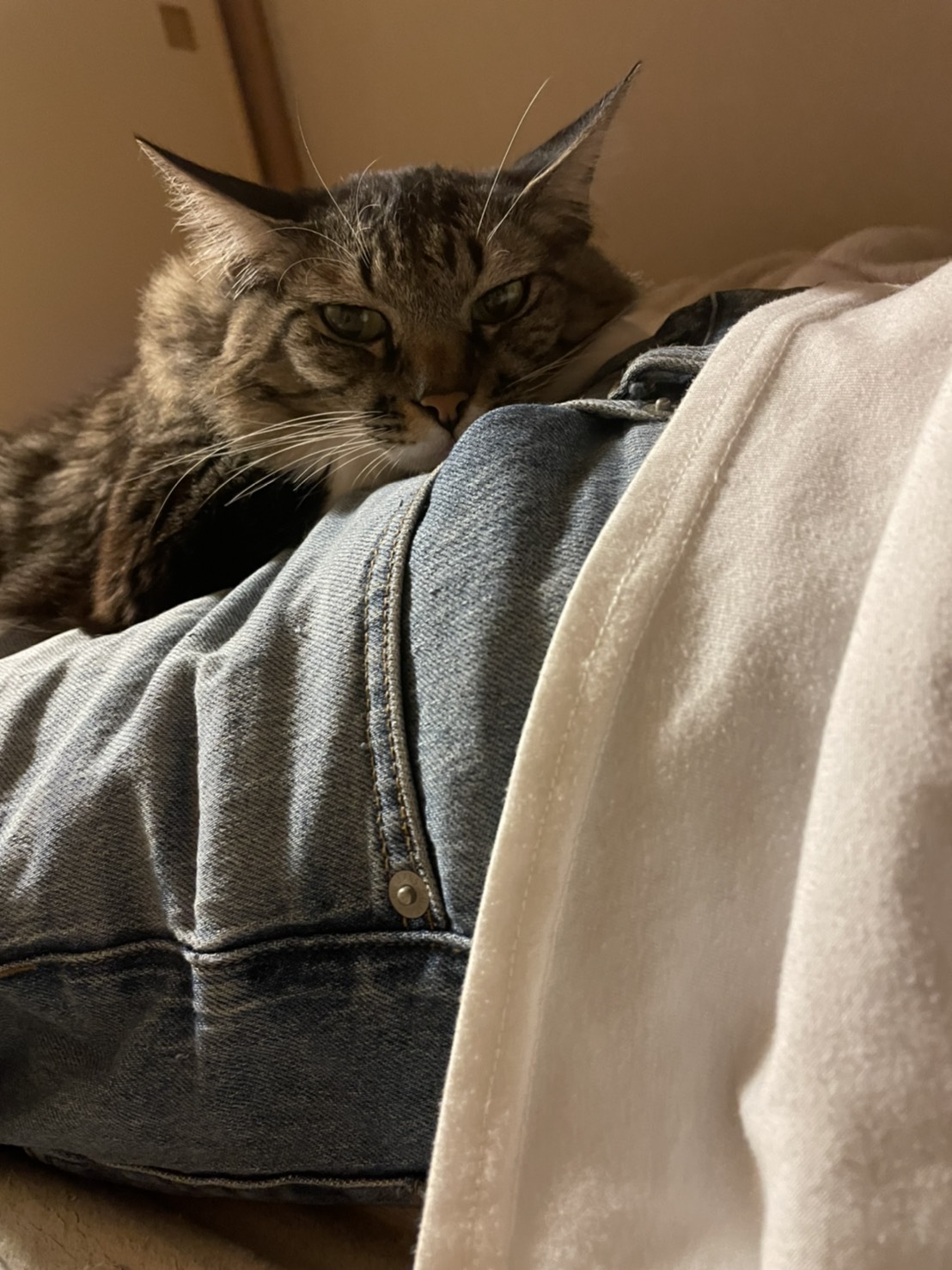 私の可愛いにゃんこ 私のお尻でくつろいでる笑 ほーんと可愛いんだから(〃∇〃)