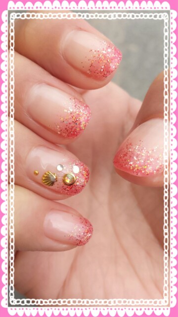 ネイル♪ 今回はシェルのパーツが新しく入ったみたいで、夏らしくラメで☆