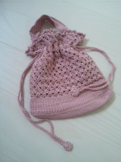 わ~い♪ 私の人生の先輩、美人お姉さまがミニバッグを編んでくれました♪ヽ(´▽`)/ 私の好きなピンク色(*^^*)めちゃ可愛い(≧▽≦) サブバックとして持ち歩きまーす(’-’*)♪