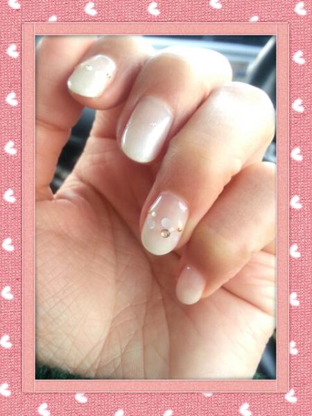 ネイル♪ 今回のネイルはパールホワイトのグラデーションにホログラムやストーンでキラキラに(≧∀≦) 冬仕様です☆