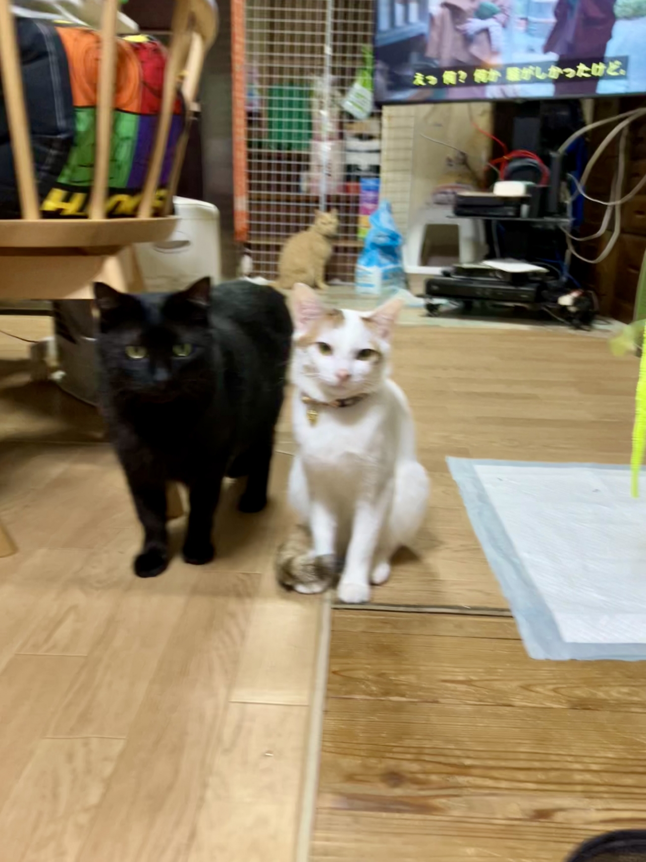 後ろにちょこんとのるんちゃん(♂) 普段、フィガロはトンくん(カンさんの息子)と隣にいることが多いのですが… 今回はカンさんと並んでました。 フィガロはまだヤングなので、距離感を気にせずグイグイきます。 そのせいでカンさんに何度も怒られてます(^◇^;) トンくんとフィガロが2人でドタバタすると、カンさんが 「お前らうるせえ!俺のシマでなに暴れとるんじゃ!」 って感じでキレます。 元ボス猫だけあって、下っぱどもにはすごみと力で示すスタイルです! そのせいで、最年長のるんちゃんの立場がますます端っこに追いやられている感じです笑 それでも、カンさんのことは一目置いているらしく、フィガロも彼なりにリスペクトしている模様です⭐︎