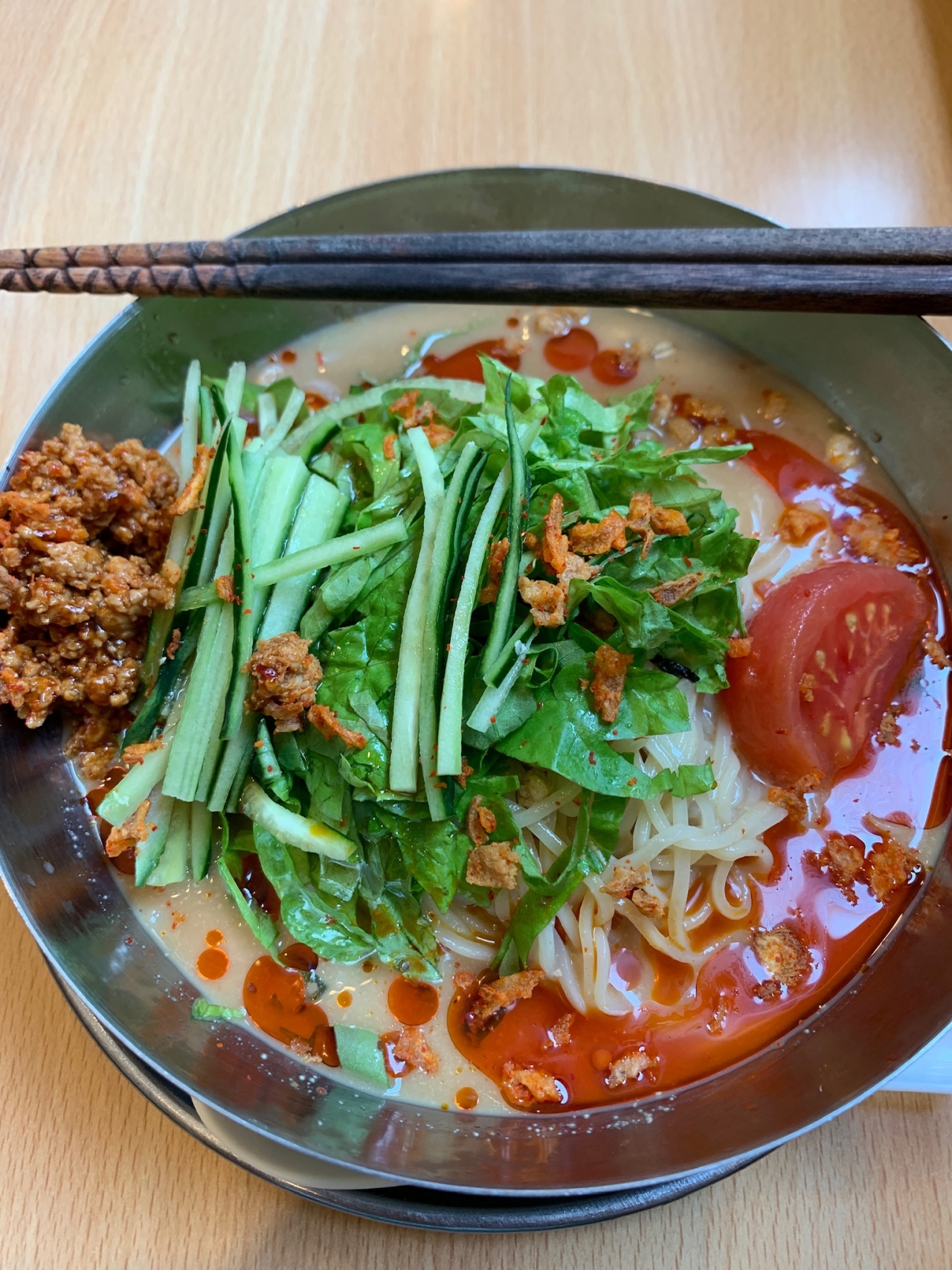 大仙市大曲にあります 【中華そば de 小松】 冷やし坦々麺 880円なり〜 嗚呼。 8月も気付けば30日。 明日は31日。(←当たり前) 時の流れに身を任せ〜(任せ〜♪)といった感じで、なんとなく毎日を過ごしている勿体ない秋田県民と言えば§ゆり§です。 色々と制限されて生活している中でも、楽しいことを見つけたり、自分がアガるような何かを発見できたらイイよねっ(°▽°)?(←誰やねん) ということで、この冷やし坦々麺も美味しかったよーって話。