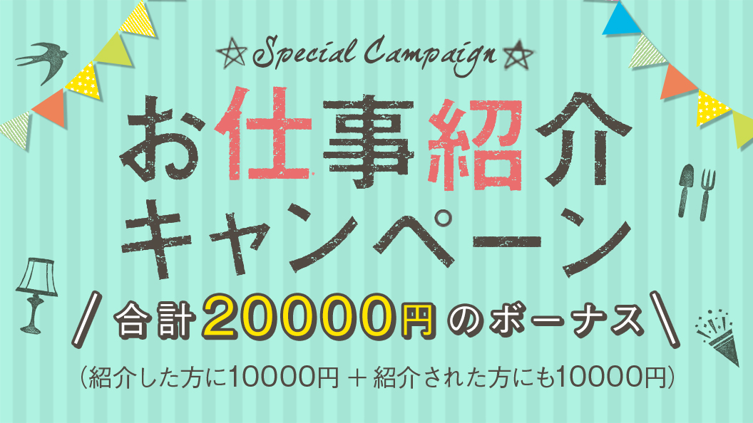 紹介しても紹介されてもOK!お仕事紹介キャンペーンでそれぞれ10,000円進呈中!
